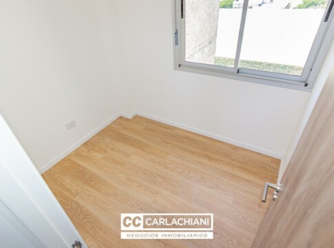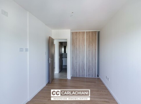 Estructura de hormigón armado | Carpintería exterior de aluminio | Puertas placas laminadas / marco de madera | Pisos porcelanato 1° calidad | Contramarco y zócalos laminados | Baños equipados con losa color blanca y placa ducha | Grifería 1° calidad | Muebles de cocina laminados con detalles en aluminio y vidrio | Mesada en granito con bacha simple en acero inoxidable | Frente de placard laminado y detalles en aluminio | Cañería para TV por cable y telefonía | Barandas en vidrio doble laminado