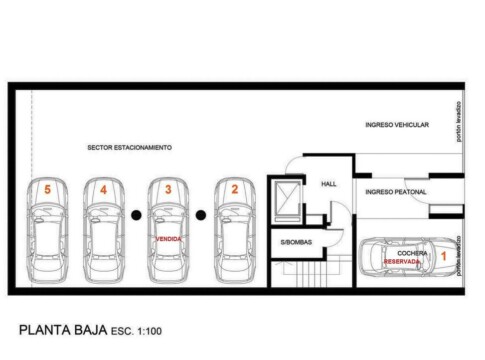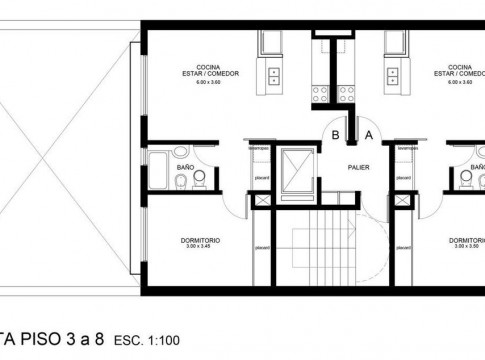El edificio cuenta con 12 pisos, 19 departamentos, 17 de 1 dormitorio, 2 de 2 dormitorios y 5 cocheras en planta baja.