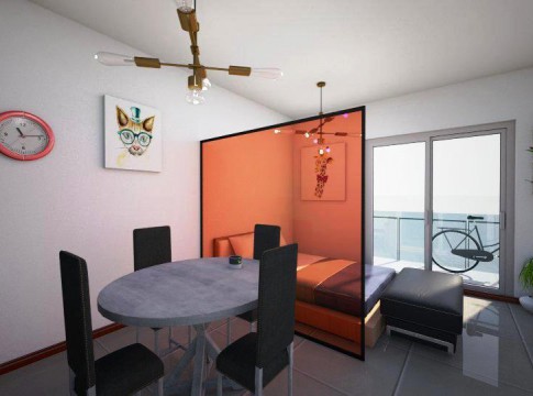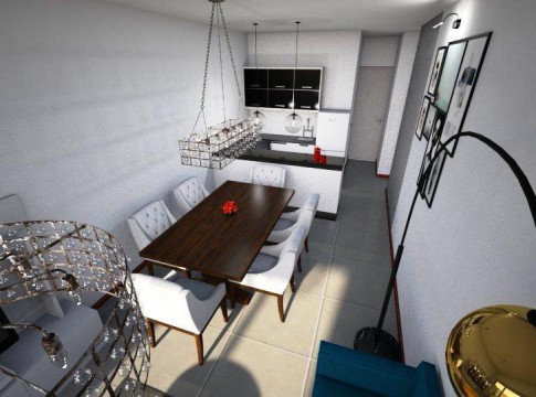 Pisos porcelanato con zócalos, yeso en paredes, aberturas aluminio Módena con DVH, griferías monocomando primeras marcas, amoblamiento de cocina a medida, piso porcelanatos en dormitorio, placard a medida y con interior, mesada cocina granito con bacha acero inoxidable, baño con cerámicos completo, mampara en ducha, artefactos primera marca. pre instalación AA y cable TV.