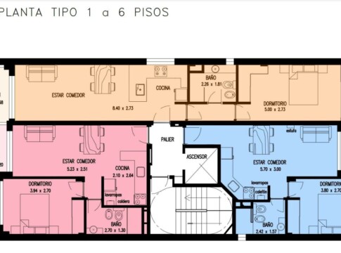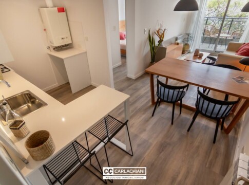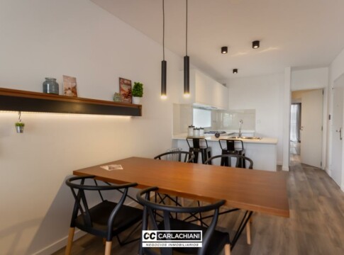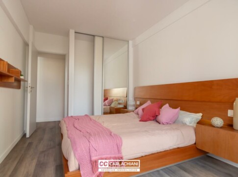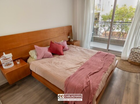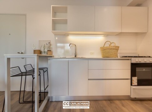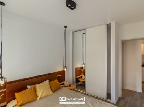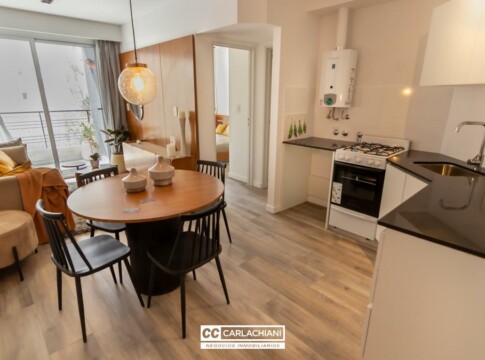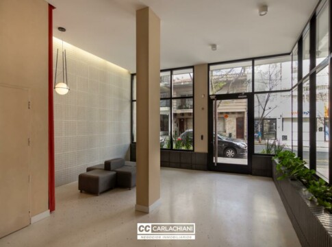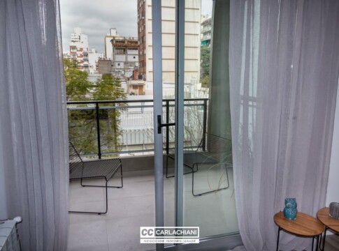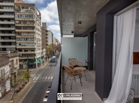 Las unidades de un dormitorio están orientadas al frente con balcón corrido, al contrafrente norte y con ventilación cruzada de doble balcón.