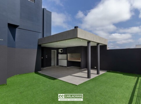 Quincho semi cubierto de uso común, con parrillero, baño y solárium.