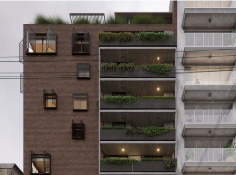 Edificio desarrollado en Planta Baja + 8 pisos por ascensor (2), con local comercial en planta baja y amplias unidades monoambientes, 2 y 3 dormitorios, todos al frente con balcón.