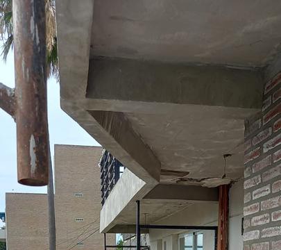 Estructura de hormigón armado y muros portante de ladrillos cerámicos y ladrillos comunes, En fachada con terminación de ladrillos vistos. Losa maciza de hormigón armado y doblado, capa de compresión, etc.