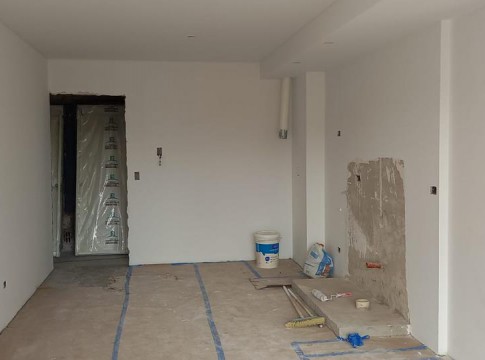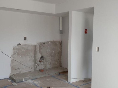 Paredes con enlucido de yeso con cantoneras metálicas en aristas salientes, en Living-comedor, dormitorio, Cocina y Baño. En circulaciones y espacios comunes enlucido en yeso terminaciones de yeso en techos. Con molduras y/o corte de pintura.