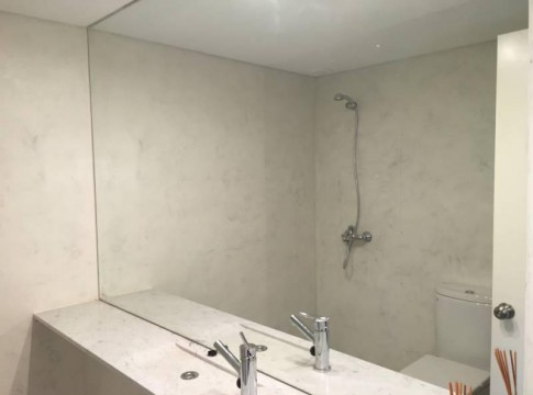 Baños totalmente equipados, mesada y piso de mármol de Carrara.