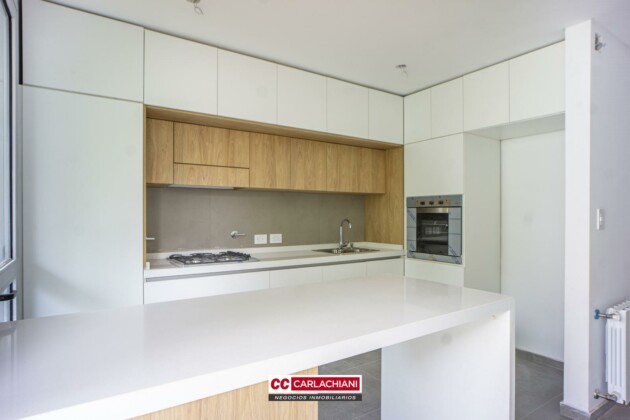 . Cocina de diseño. Alacenas, mesada y barra con hermosas terminaciones.