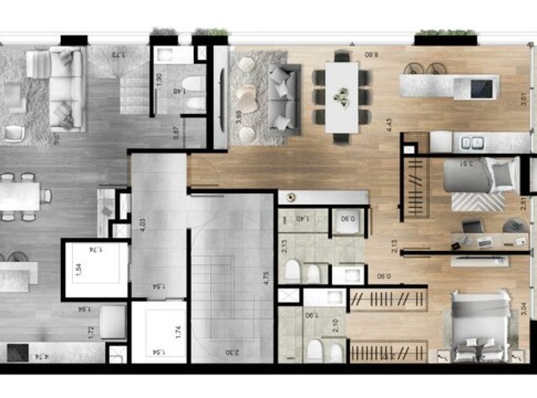 Se trata de un edificio que contará con departamentos, dúplex y pisos exclusivos. Los mismos, dispuestos en planta baja y 8 pisos, con cocheras, bauleras, terraza con pileta, quincho semi cubierto y parrillero.