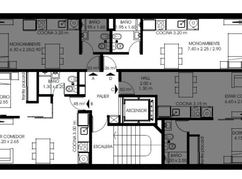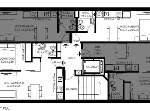 2 unidades de 1 dormitorio y 2 unidades mono ambientes.