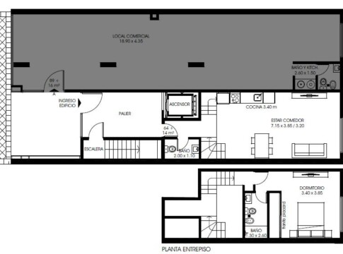 1 Local comercial vidriado al frente, 1 Dúplex de 1 dormitorio con patio de uso exclusivo.