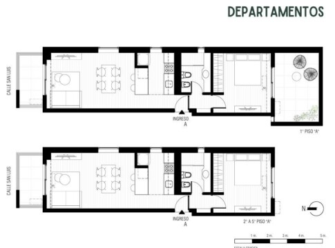 • Cerramientos medianeros: doble muro con aislación intermedia. Exterior de ladrillos vistos de