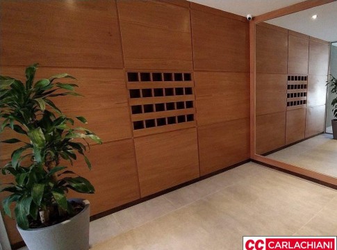 • Hall de ingreso con detalles en madera y pisos de porcellanato.
