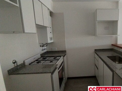 • Muebles de cocina completos: bajo mesada, alacenas, porta microondas, bodeguero, en melamina blanca con filos de aluminio, mesada en granito gris mara o similar, pileta de acero inoxidable Johnson y gritería monocomando FV. Espacio y conexiones para lavarropa.