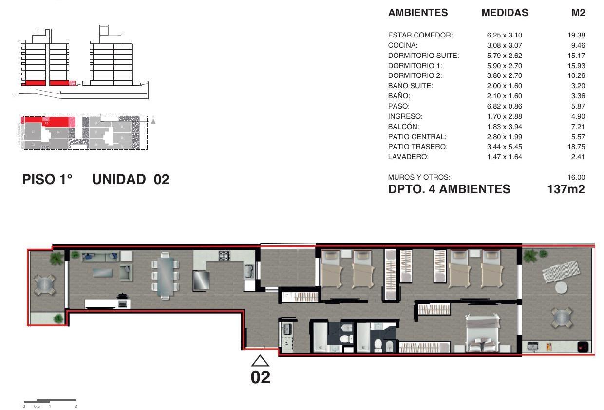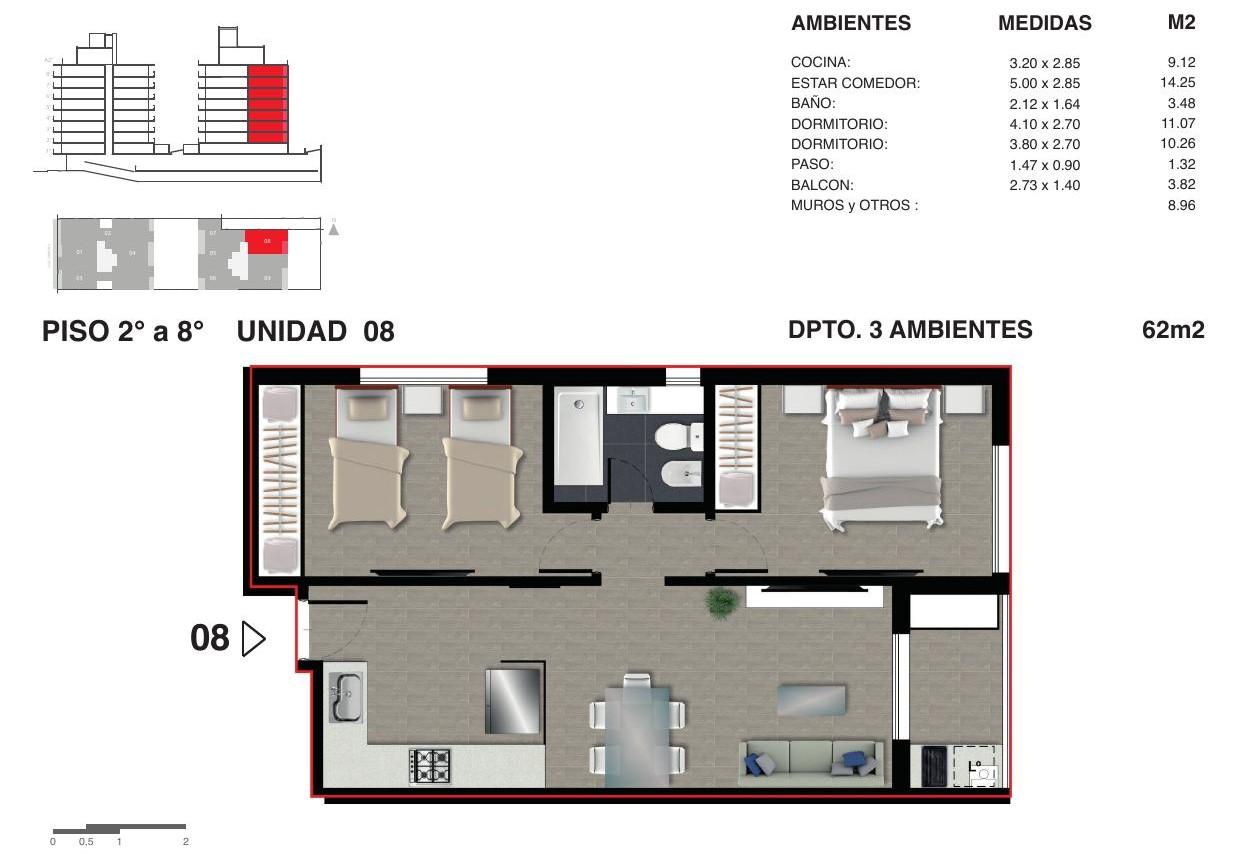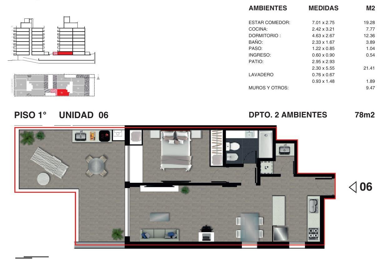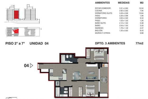 Edificio desarrollado en dos torres, con unidades tipo loft, 1, 2 y 3 dormitorios. Local comercial en planta baja mas cocheras Y bicicleteros.
