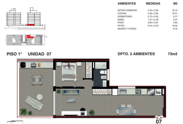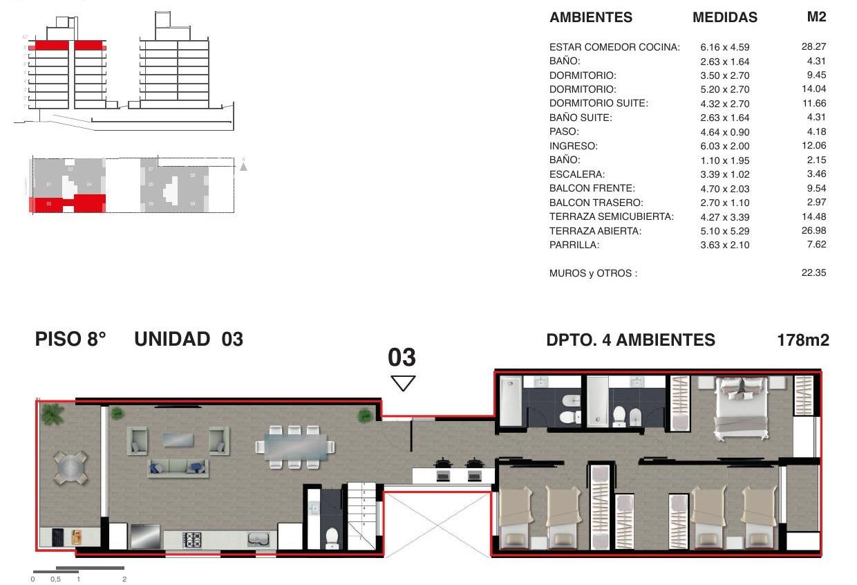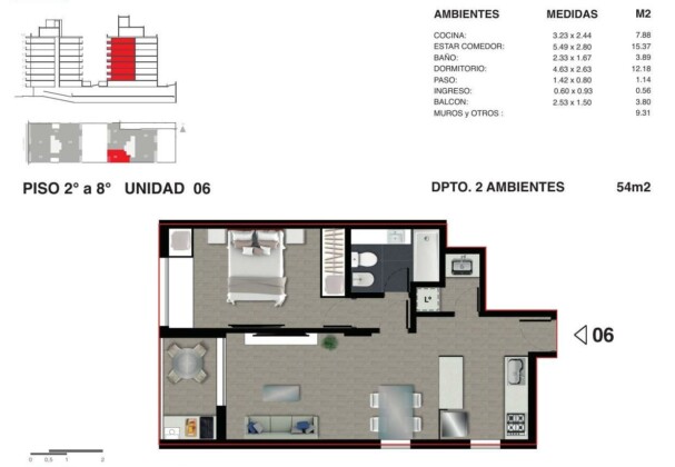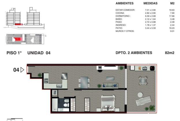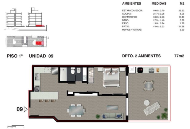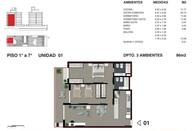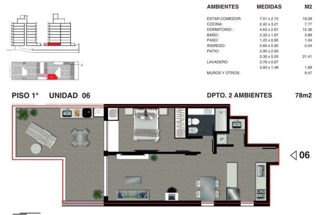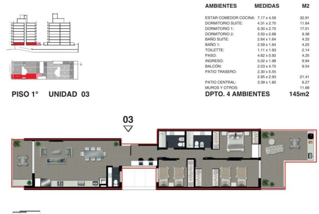 Edificio desarrollado en dos torres, con unidades tipo loft, 1, 2 y 3 dormitorios. Local comercial en planta baja mas cocheras Y bicicleteros.