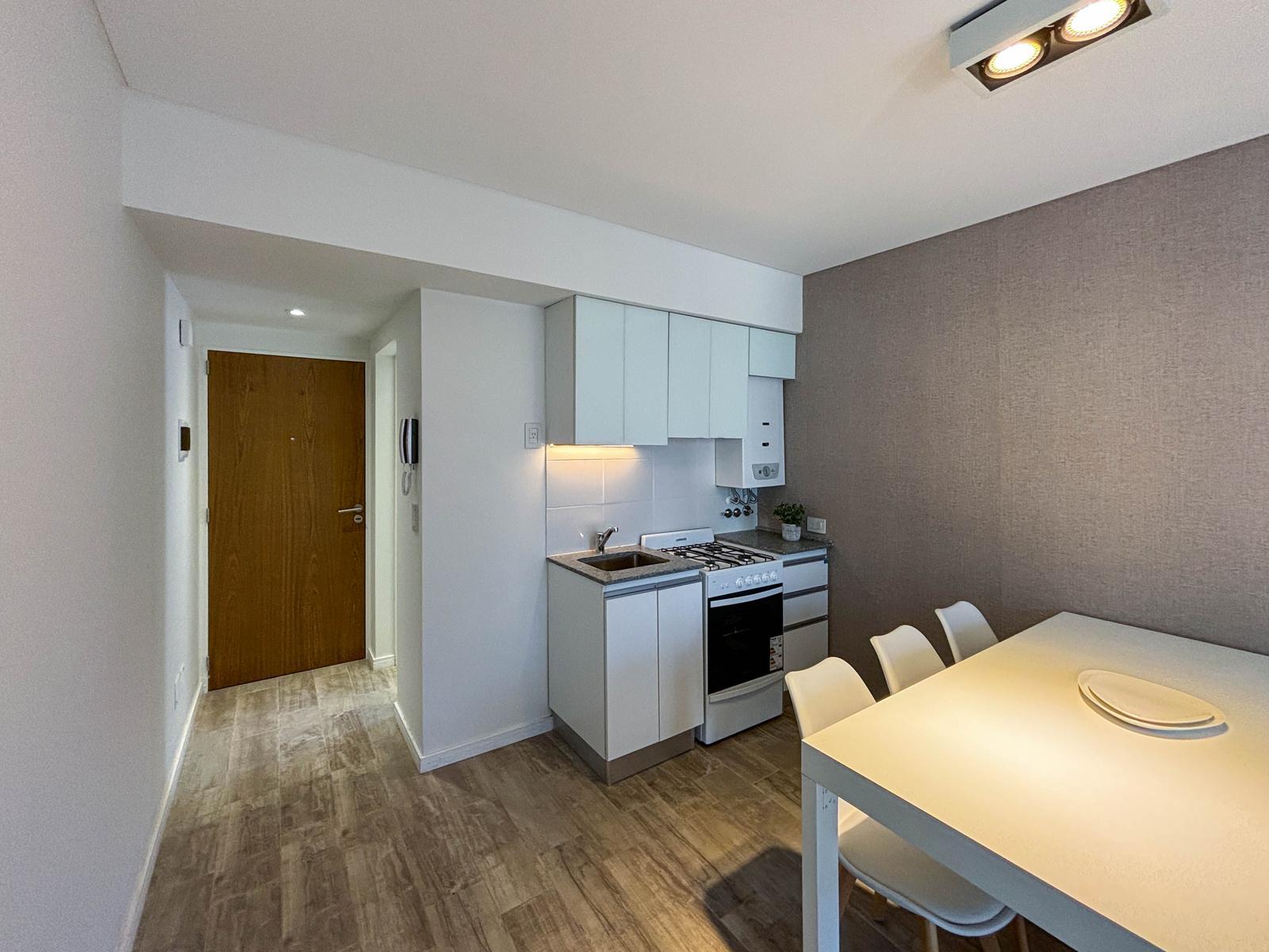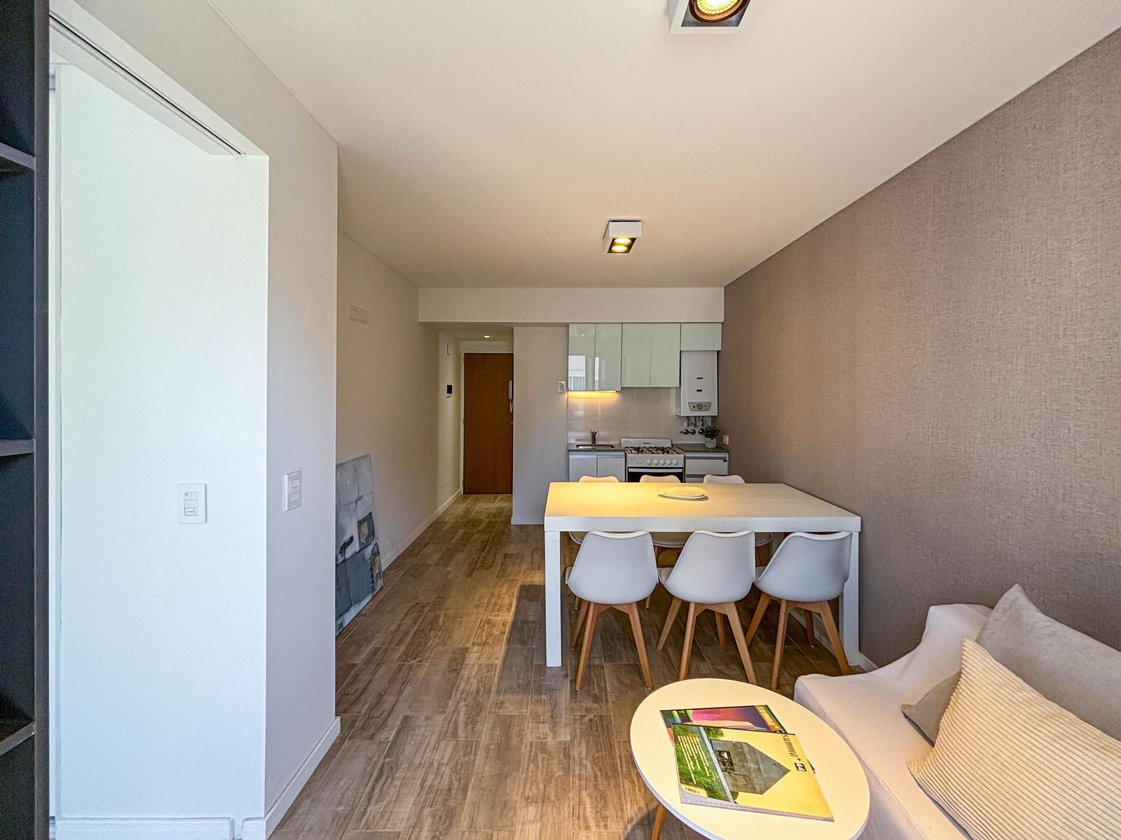 Departamento de un dormitorio al contrafrente en la Torre II . Amplio patio con salida desde el living. Baño completo con bañera . Dormitorio separado por puertas corredizas que da la posibilidad de integrar todo a un solo ambiente. Cocina integrada completa.