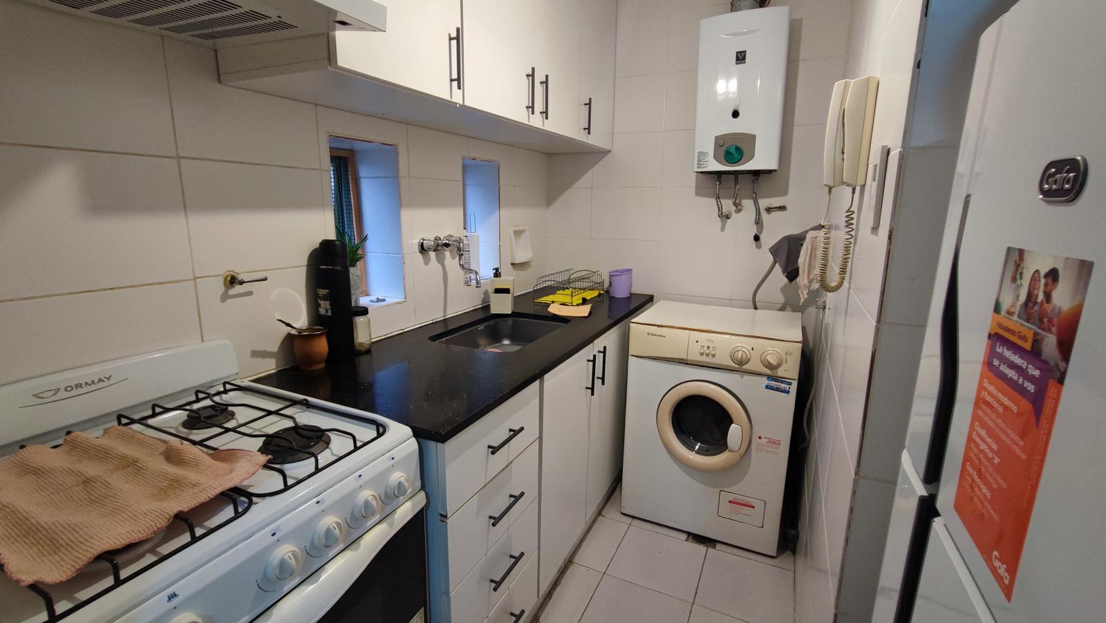 Cocina independiente reciclada completa (alacenas, bajo mesada, mesada de mármol negro, artefacto de cocina y calefón a gas mas conexión para lavarropas. Cuenta con ventilación natural).