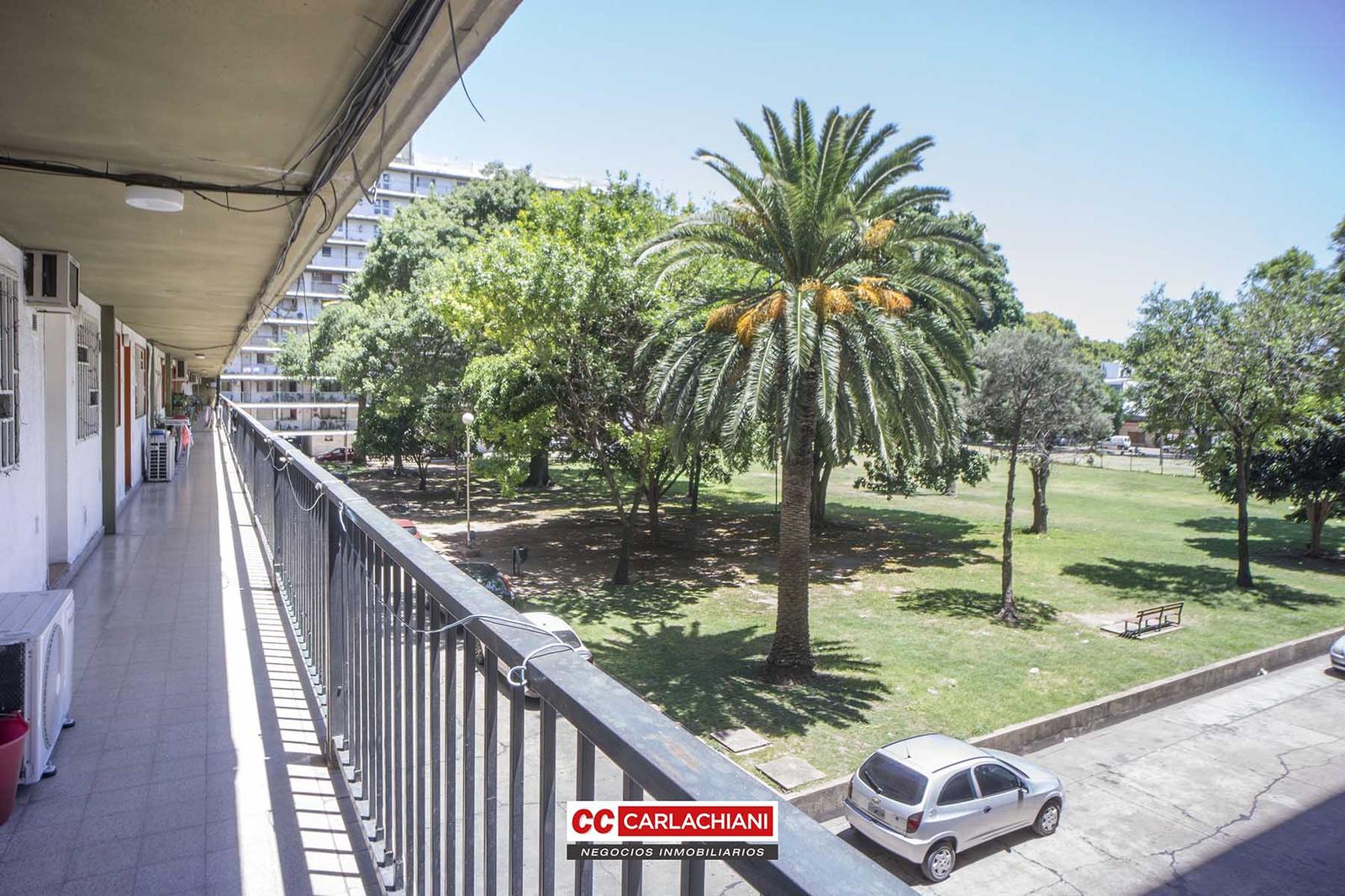 Departamento de dos dormitorios ubicado en el 2 piso vista a parque, espacio de usos común para el complejo. Living comedor amplio, baño completo, cocina comedor separada, dos dormitorios grandes. Reciclado Cocheras disponibles y abiertas para los propietarios.Jardín con arboleda central de uso común.