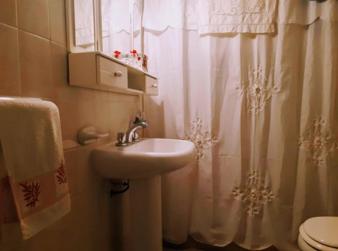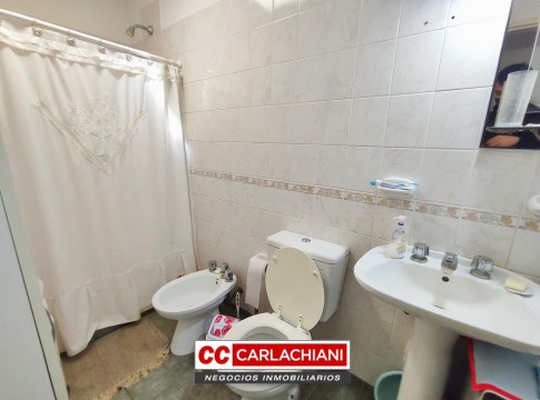 * Baño revestido con ducha, vanitory, inodoro y bidet.