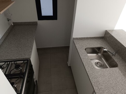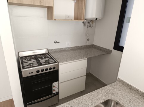 TERMINACIONES:Pisos porcelanato con zócalos, yeso en paredes, aberturas aluminio Módena con DVH, griferías monocomando primeras marcas, amoblamiento de cocina a medida, piso porcelanatos en dormitorio, placard a medida y con interior, mesada cocina granito con bacha acero inoxidable, baño con cerámicos completo, mampara en ducha, artefactos primera marca. pre instalación AA y cable TV.Edificio previsto para gas natural, se entrega con calefactor en living. Terraza con amenities. Posibilidad de cocheras en el edificio.