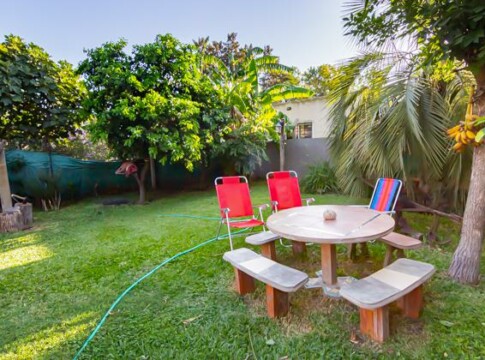 El exterior es un verdadero paraíso: una gran galería con parrillero y un enorme patio trasero con pileta, rodeado de arboles de gran envergadura para disfrutar al aire libre.