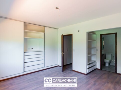 En la planta alta, una hermosa escalera lleva a la zona privada, donde encontrarás dormitorios amplios y luminosos. El principal destaca por su vestidor, baño en suite con jacuzzi y salida a una terraza con vista al parque. Además, cuenta con una baulera, perfecta para almacenamiento.
