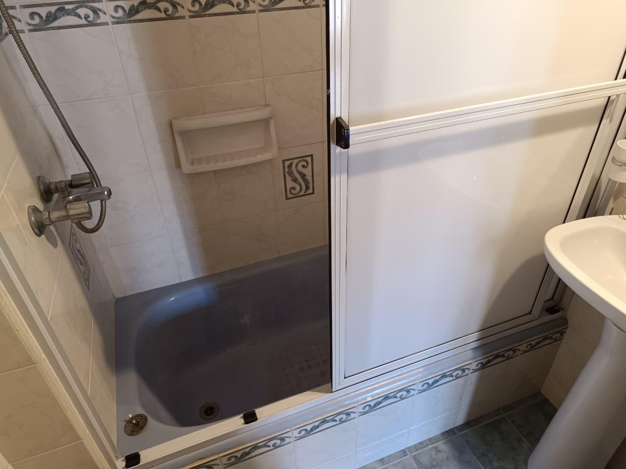 Baño renovado con bañera.