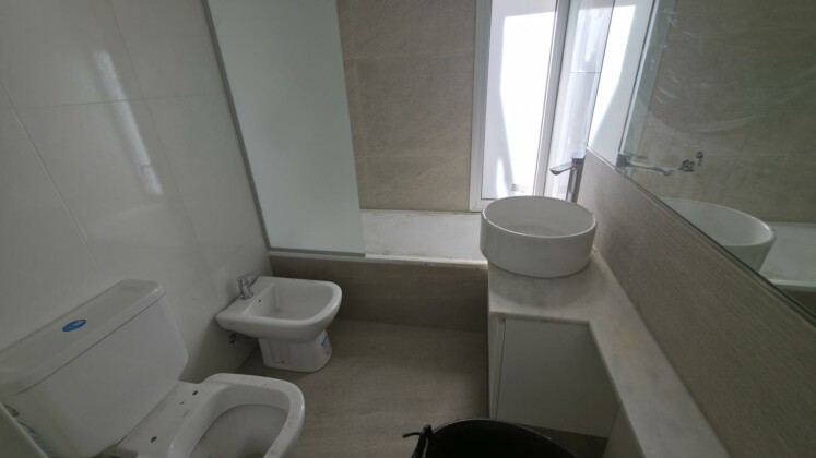· Baños: Porcelanato Blanco 60×30 Portinari. Detalles en venecitas y terminaciones con cantos de acero inoxidable.