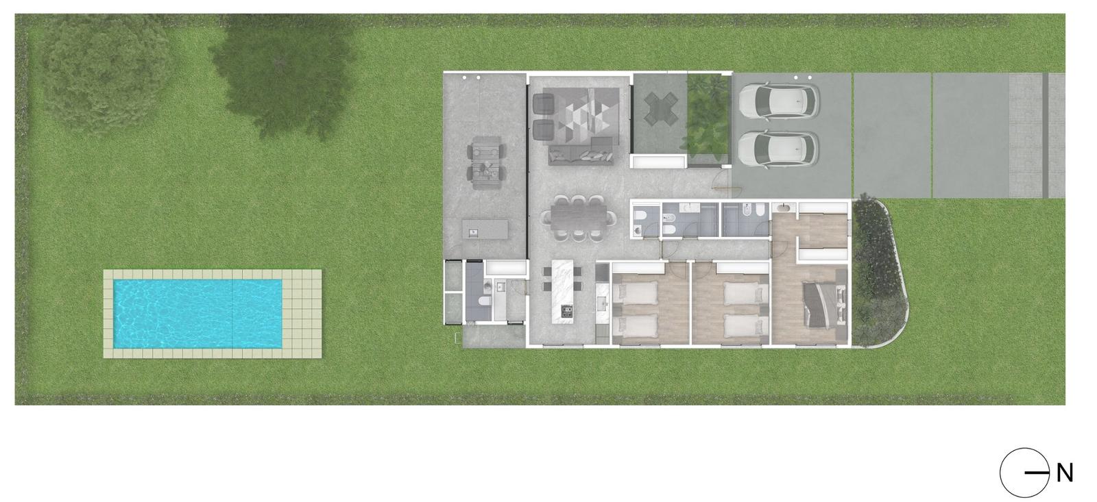 La casa se ubica en el lote 72, con excelente ubicación y una orientación perfecta, dado que el frente es norte y genera ambientes muy luminosos. Posee ingreso vehicular y cochera para 2 autos, además de un ingreso peatonal que accede a un hall de recepción que conecta el gran living comedor con cocina semi integrada mediante isla, el cual posee ventilación cruzada entre un patio interno y un increíble ventanal con vista al patio y salida a la galería con parrillero. En el paso al área íntima encontramos un toilette, a continuación un baño completo, 2 dormitorios y el dormitorio principal con vestidor y baño en suite.