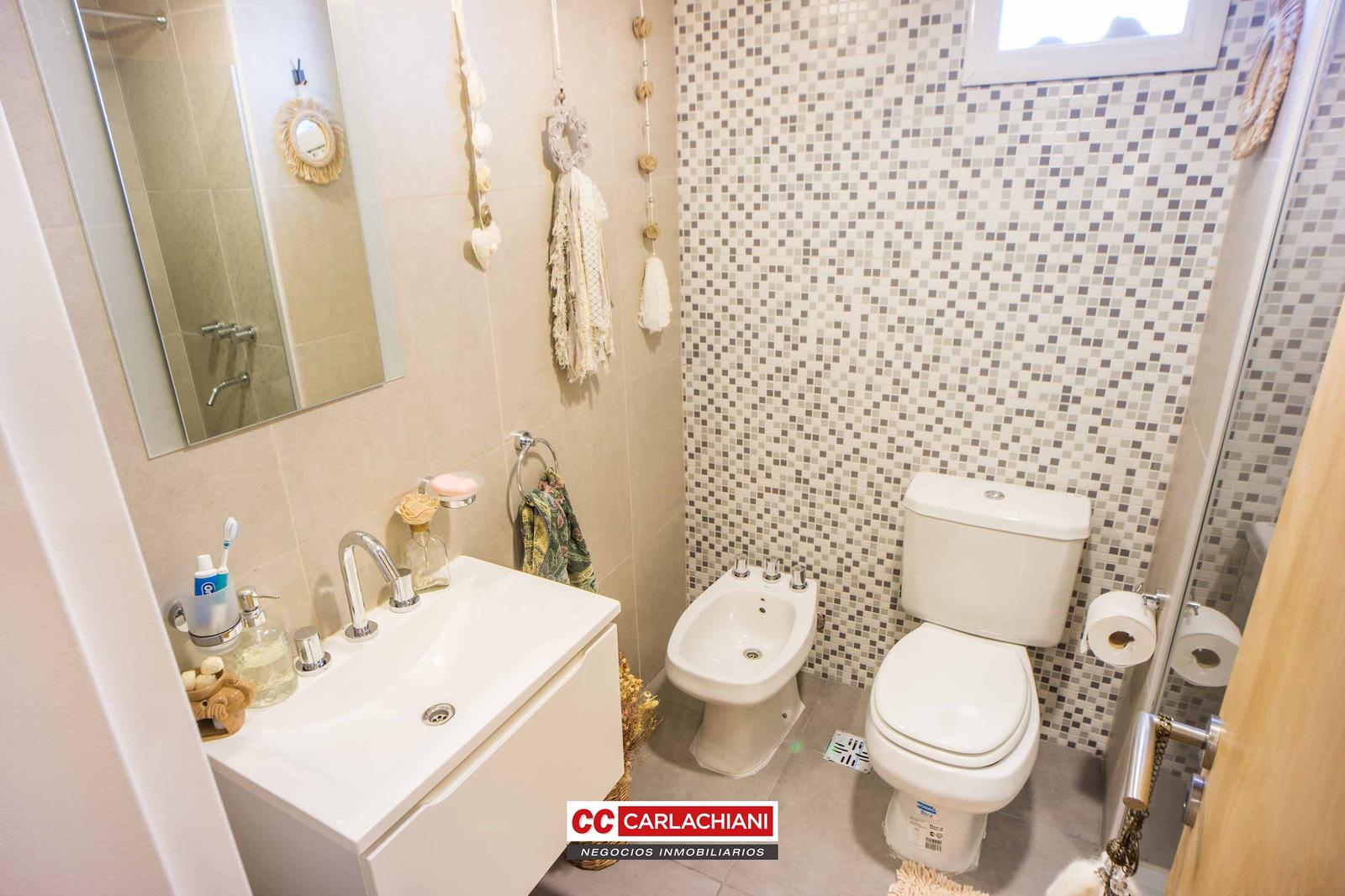 Dos baños (uno completo con ducha y mampara de vidrio, otro tipo toliette).