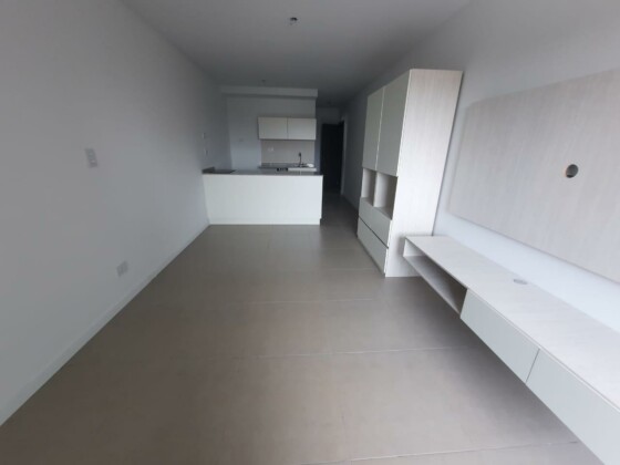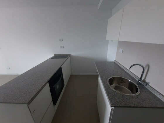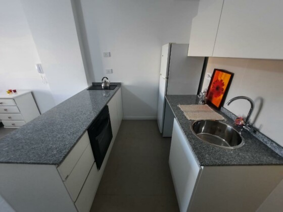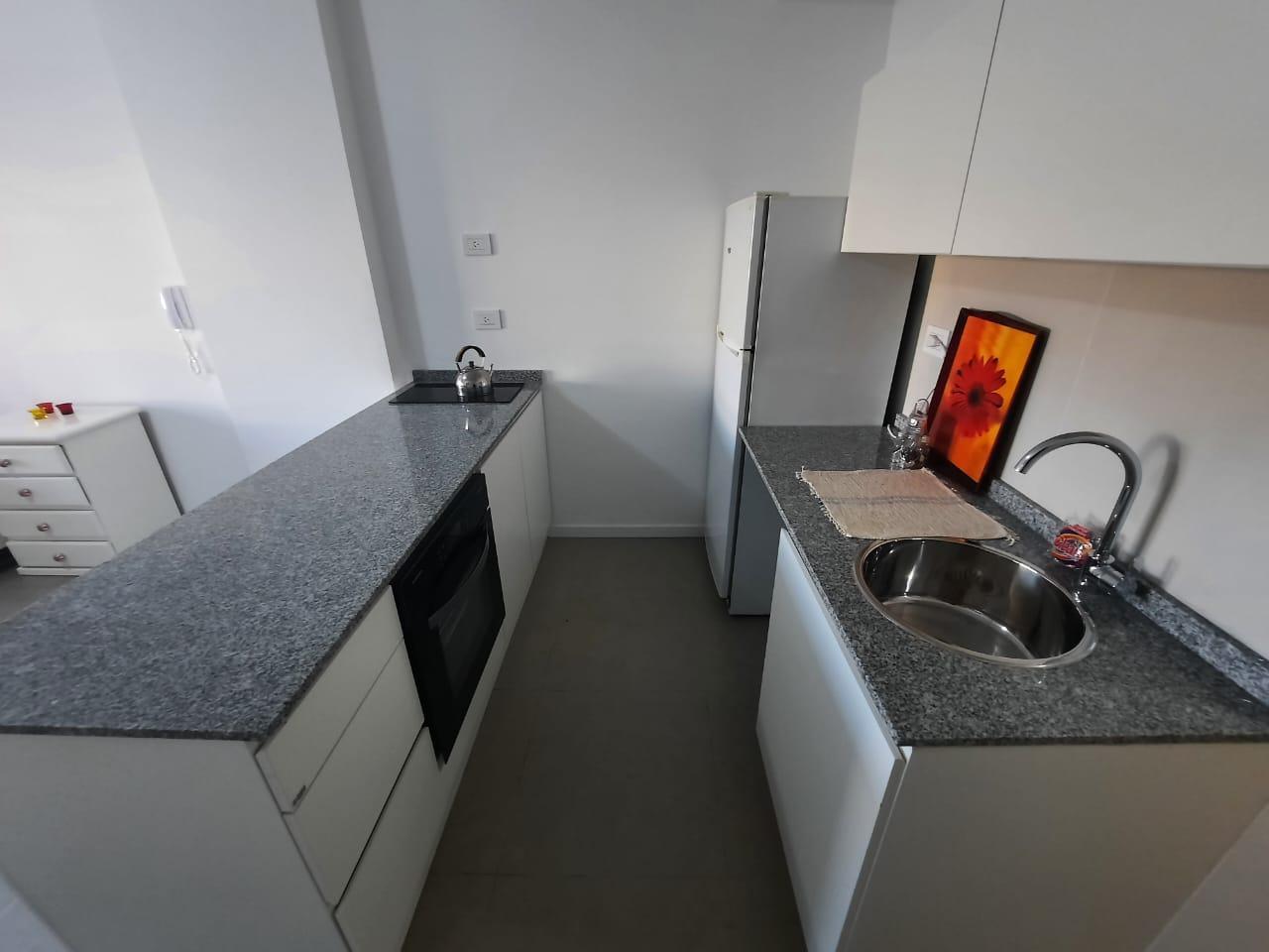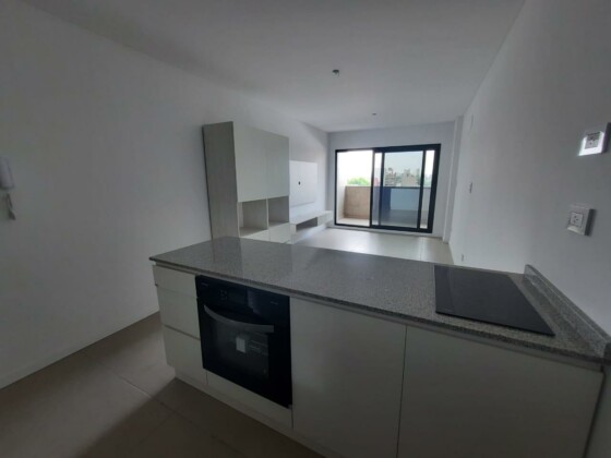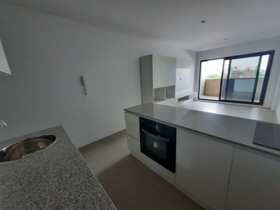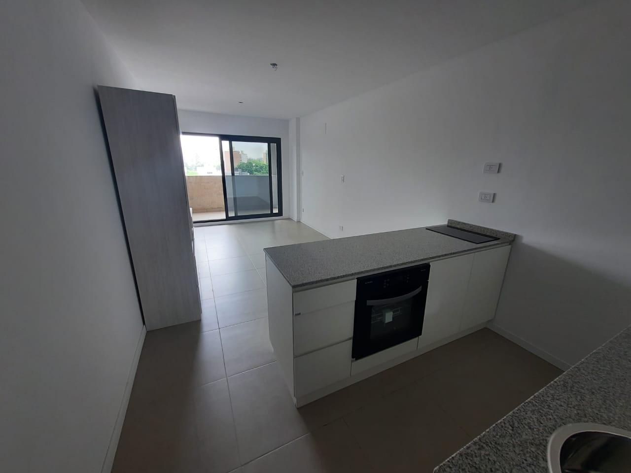 Departamento de excelente calidad próximo al campus universitario de la UCA. Cuenta con un gran ambiente de 31 m2, con cocina semi integrada con barra, muy buena capacidad de guardado con alacenas y bajo mesada. Mesada de granito gris, anafe de vitrocerámica y horno eléctrico empotrados. Pisos de porcelanato, aberturas de aluminio con DVH y vidrios tonalizados. Orientado al Este con vista al centro de manzana.