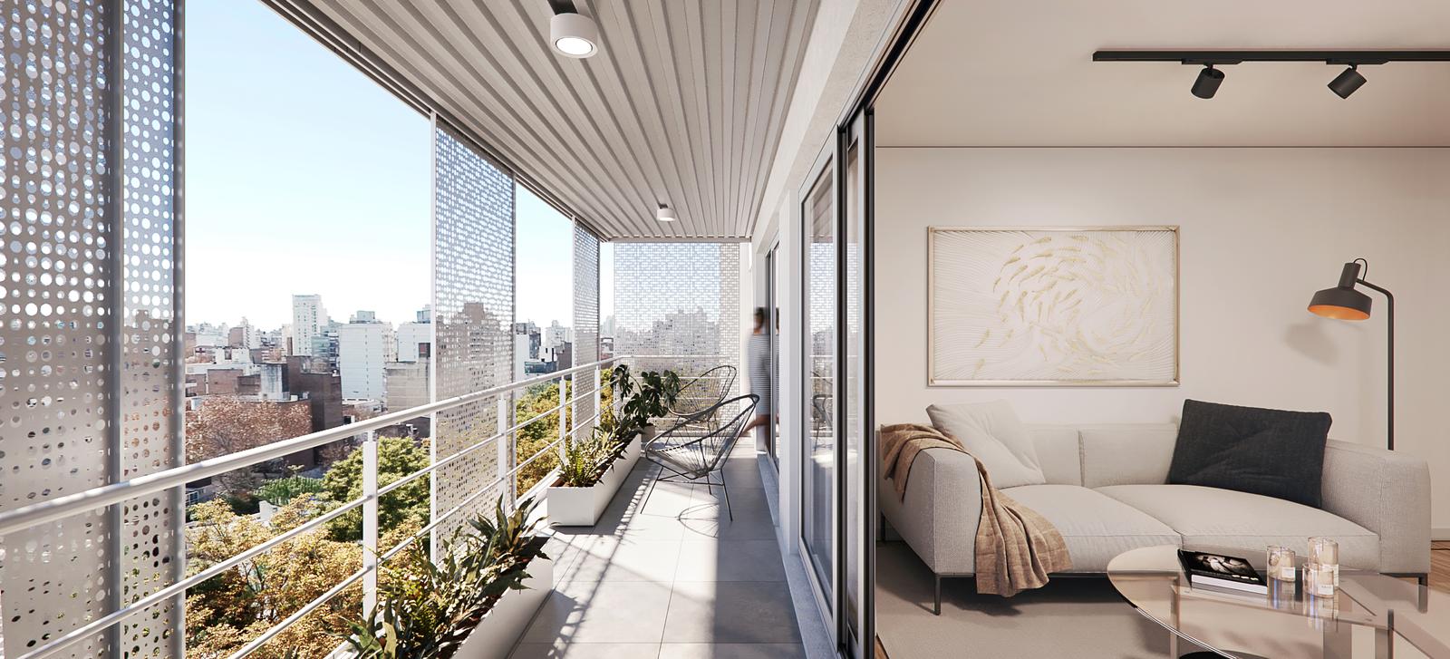 Este edificio de seis pisos, actualmente en construcción con fecha de entrega programada para diciembre de 2026, ofrece un diseño moderno y funcional. Al ingresar al departamento, se encuentra un acogedor living comedor que se integra parcialmente con la cocina, desde donde se accede a un balcón al contrafrente, perfecto para disfrutar del aire libre. El departamento cuenta con dos dormitorios, destacándose el principal por su amplitud, baño en suite y vestidor. Un baño completo adicional asegura comodidad para todos los ocupantes y visitantes.