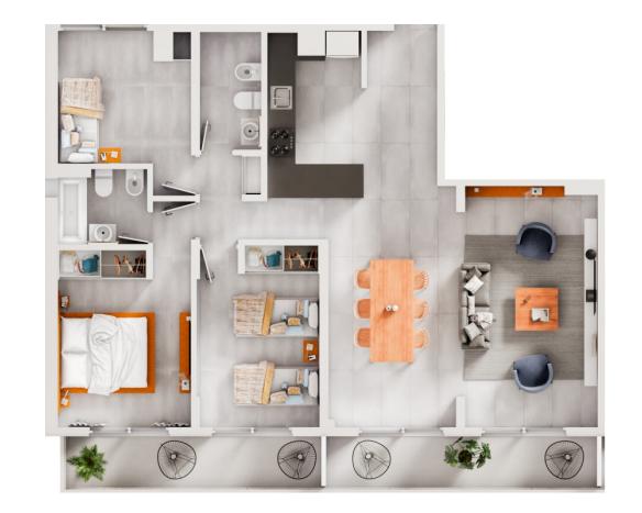 La mejor zona de Rosario. A metros del río, el parque y Bv. Oroño, el cual hacen de esta ubicación el punto ideal para vivir y disfrutar el día a día.DESCRIPCIONDepartamento en piso 5, de tres dormitorios con placares incorporados, (Uno de ellos tipo comodín). Cocina equipada con bajo mesada y alacena con barra desayunadora, lavadero independiente, artefactos de primera calidad. Pisos de porcelanato en todos los ambientes. Gran balcón al frente (Orientación Sur).DESTACADOSExcelente disposición y orientación.Calidad y detalles en terminaciones.Lavadero independiente.Cochera en el edificio.Conexión para gas natural.