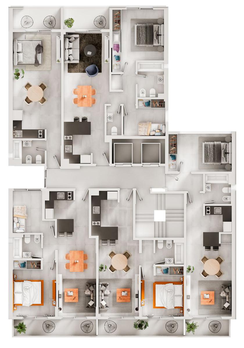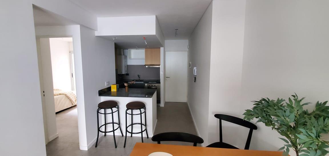 Departamento de un dormitorio al frente ventilación cruzada con dormitorio plus, habitación auxiliar que se convierte en un departamento de dos dormitorio. Cocina completa semiintegrada con bajo mesada y alacena, artefactos de primera calidad. Conexión de gas natural. Pisos de porcelanato en todos los ambientes. Gran balcón corrido totalmente al frente con acceso desde living y un dormitorio.