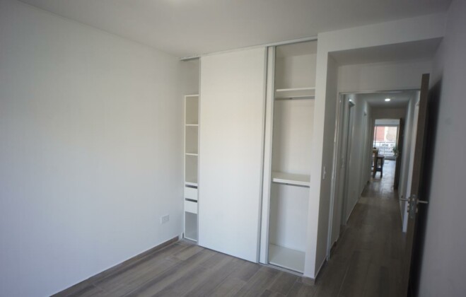 Departamento en primer piso con amplio patio y balcón, dos baños amplios.