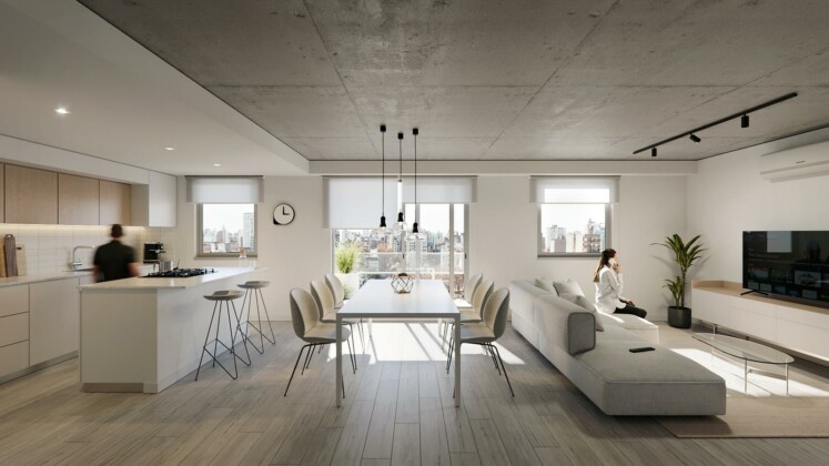 El edificio cuenta con 10 pisos y todos los departamentos están diseñados con amplios balcones, ventilación cruzada y espacios de almacenamiento convenientes, garantizando un estilo de vida cómodo y funcional. La unidad incluye un living-comedor, una cocina semi-integrada, un dormitorio y un baño completo.