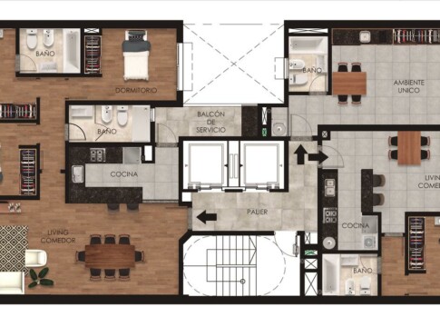 Ingreso por pasillo compartido con 3 departamentos en PB mas 3 en PA, unidad 03-00 en PB que se encuentra al final del pasillo (centro de manzana) desembocando en un pequeño patio muy luminoso.