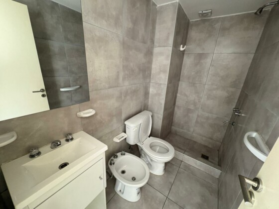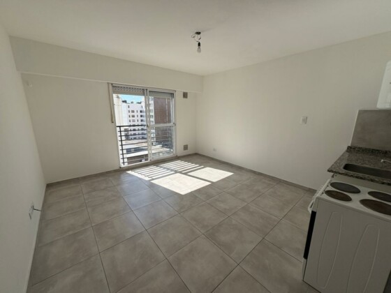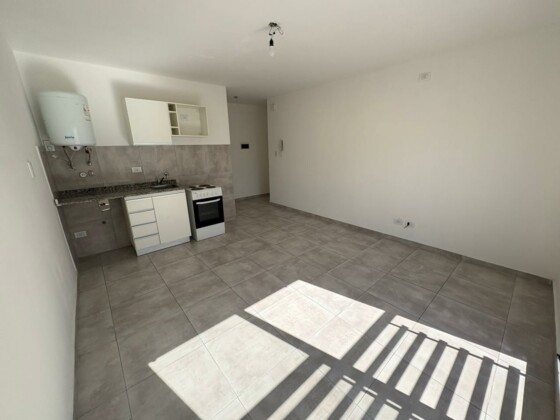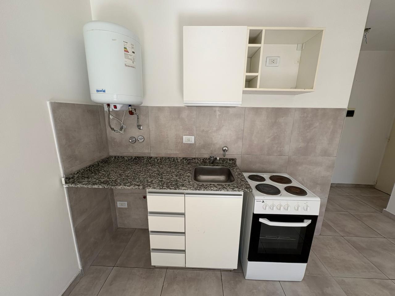 Departamento monoambiente en primer torre al contrafrente. Ingreso al ambiente único con cocina integrada completa (alacena, bajo mesada, termotanque y artefacto de cocina eléctricos instalados). Baño completo con ducha. Ajuste Cuatrimestral por IPC.