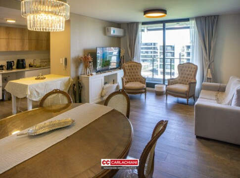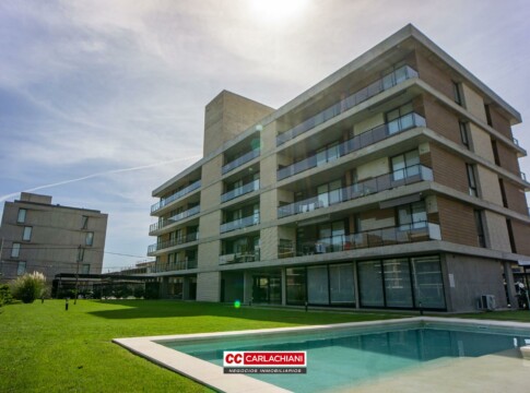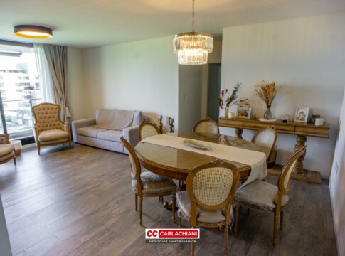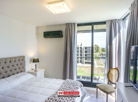 Departamento de 3 Dormitorios en segundo piso con balcón y vista al parque interno del complejo. Unidad con cocina con amoblamiento completo, bajo mesada, alacena e integrada mediante barra, sector de lavadero, living comedor con ventanal a medida y salida al balcón exclusivo con parrillero privado.Dos baños completos, uno en suite en el dormitorio principal con vestidor y 2 dormitorios con placar, ambos con salida al balcón.