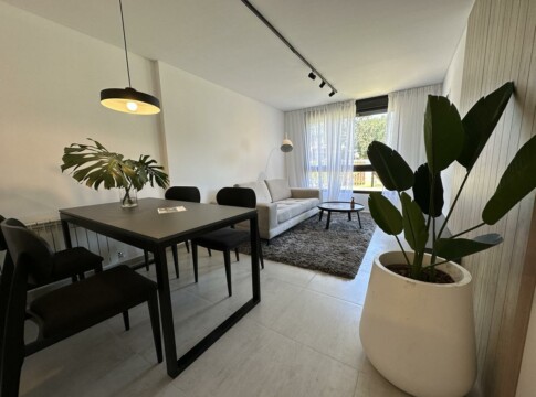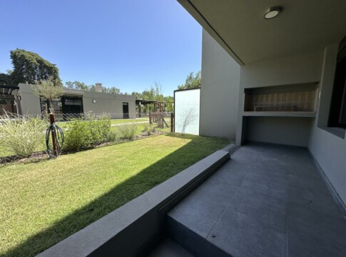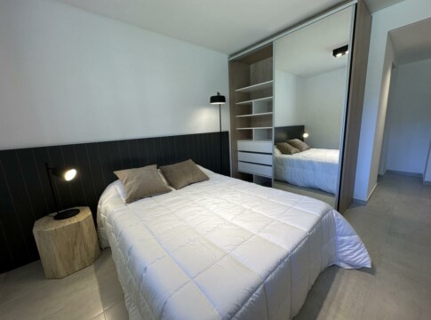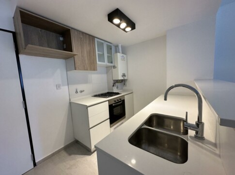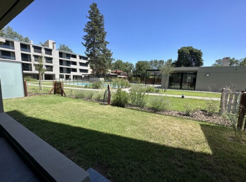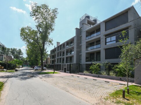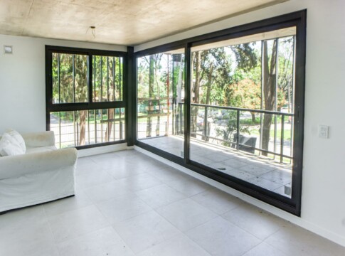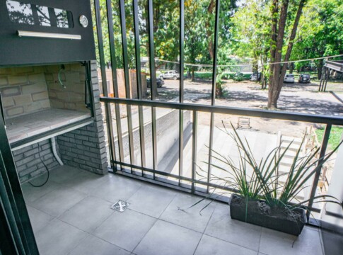 Departamento de 2 Dormitorios con balcón y vista a la arboleda perimetral. Unidad con cocina semi integrada con amoblamiento completo, bajo mesada, alacena y barra con bacha. Living comedor con ventanal a medida y salida al Balcón exclusivo con parrillero privado. Un baño completo, un toilette y 2 dormitorios con placares, el principal con salida al balcón corrido.
