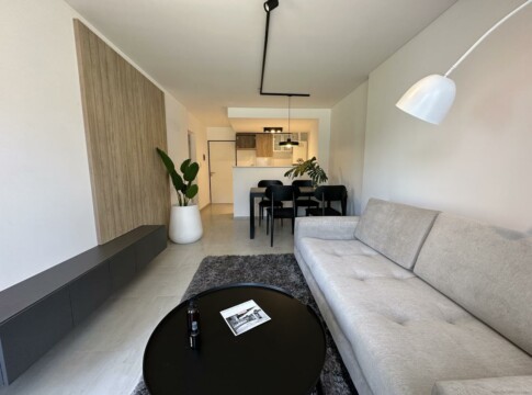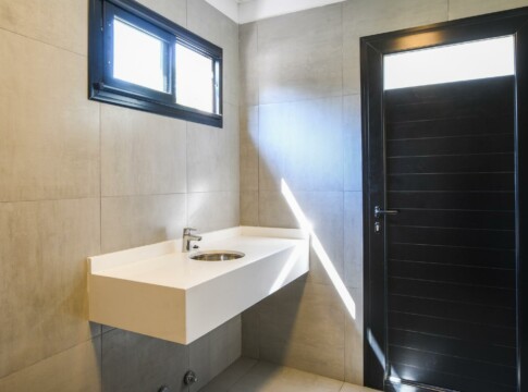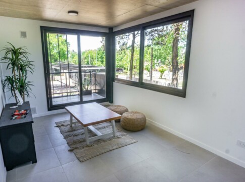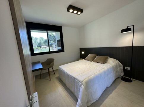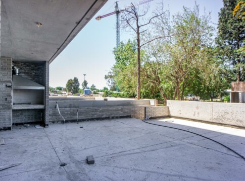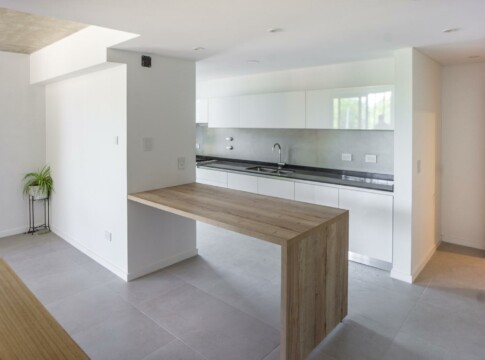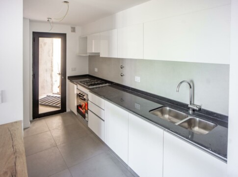 Unidad de diseño moderno con cielorrasos de hormigón a la vista y yeso en áreas de descanso, aberturas de aluminio a medida con DVH, placares de melamina con interiores y perfiles de aluminio, pisos de porcelanato en zonas húmedas y sociales con zócalos de poliestireno blanco, pisos vinílicos de alto tránsito en dormitorios y de cerámicos con zócalos en mismo material en el patio. Mesada de granito, pileta de acero inoxidable y grifería monocomando de primera calidad. Caldera Dual individual para agua caliente y calefacción (sin radiadores), cocina, preinstalación para aire acondicionados y cañerías para internet/telefonía y cable en todos los ambientes. Baños con loza sanitaria y grifería de primera calidad.