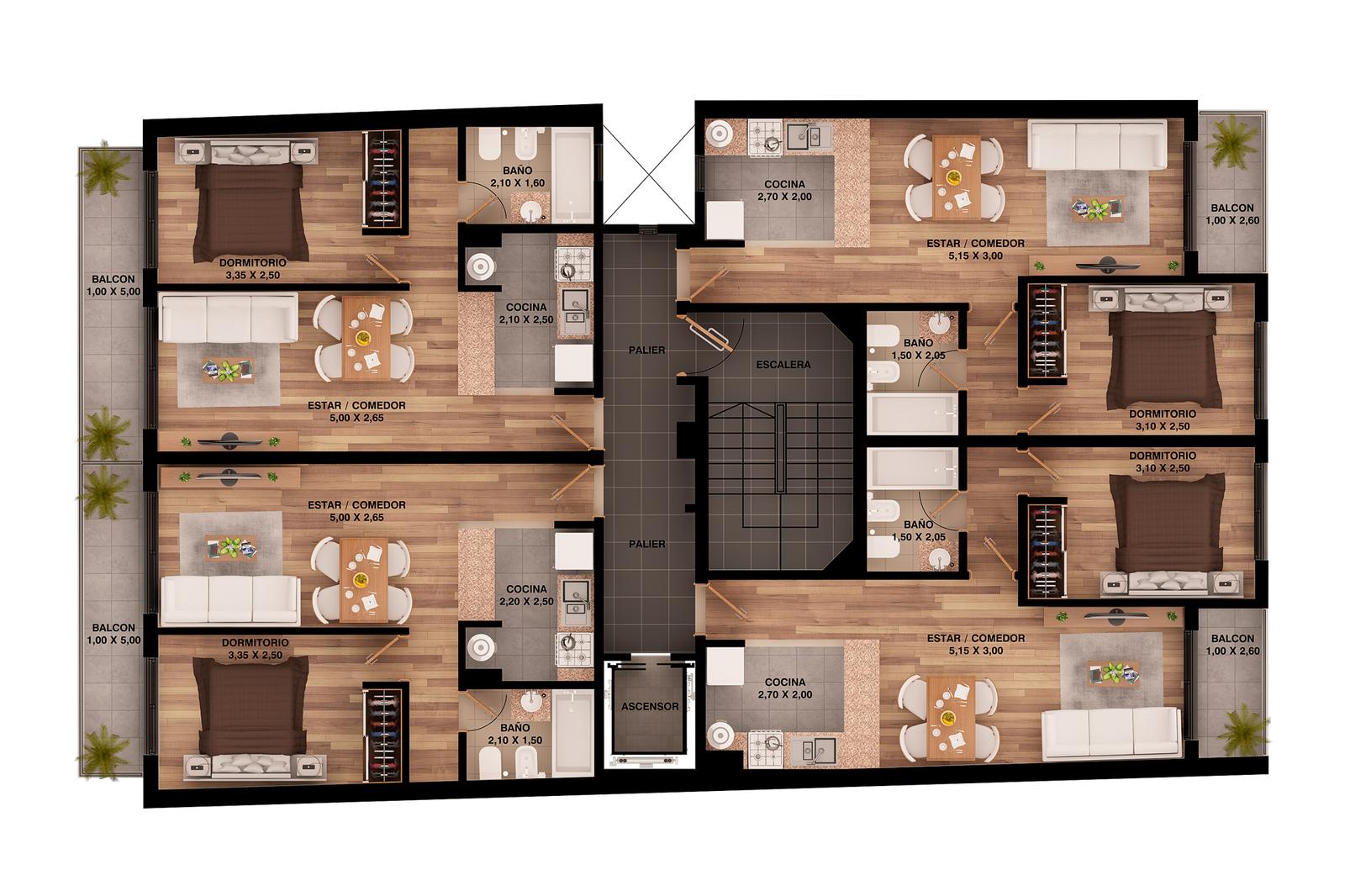 Unidad ubicada en el 3er piso al contrafrente con orientación Este.