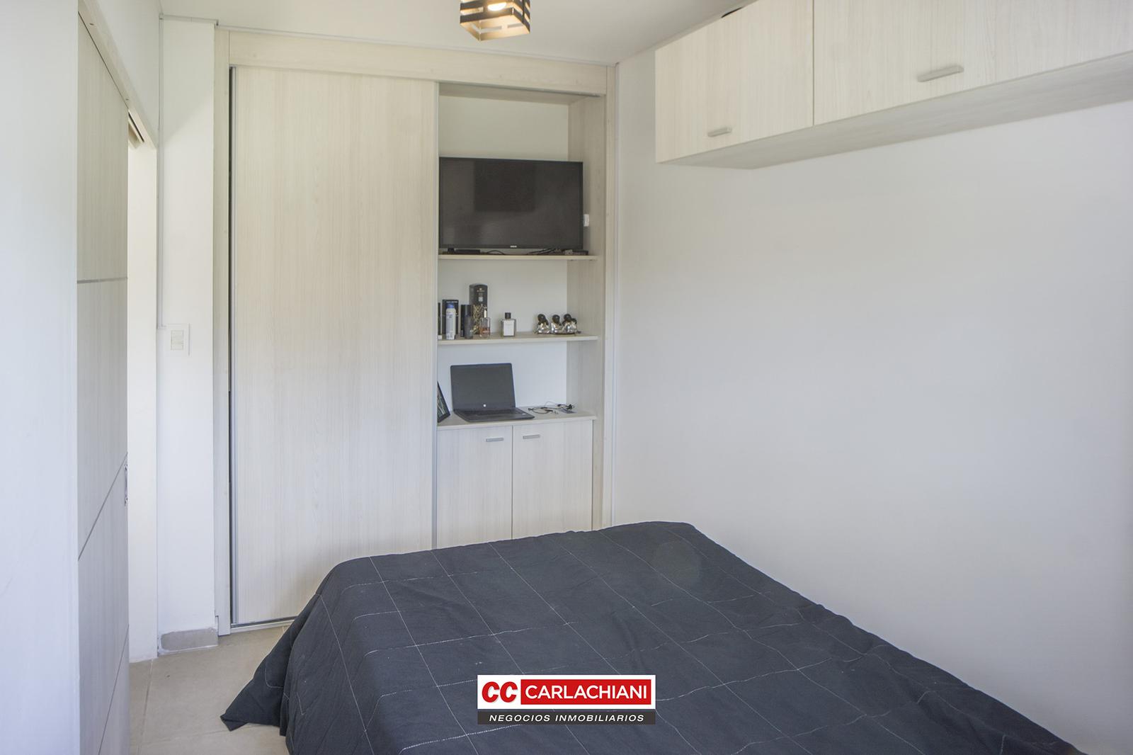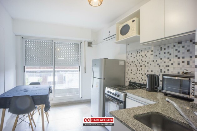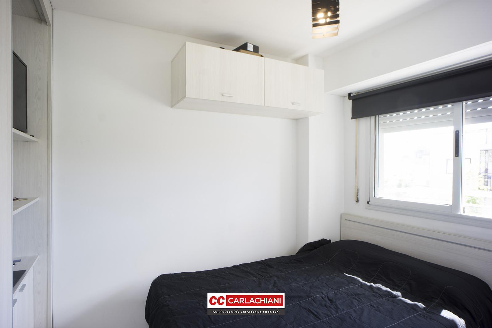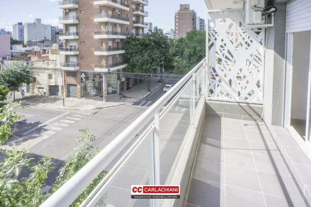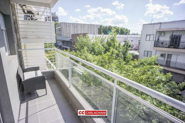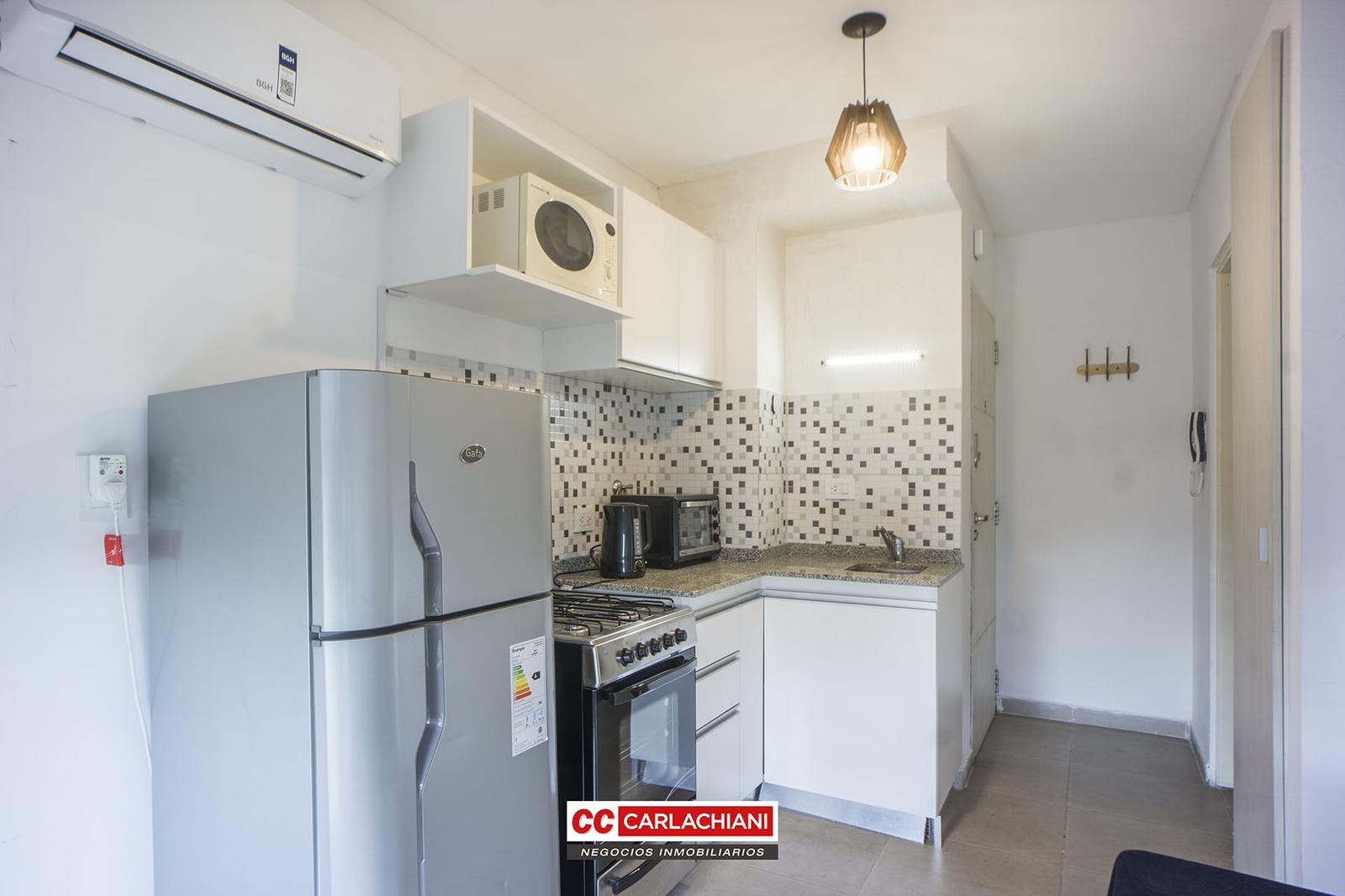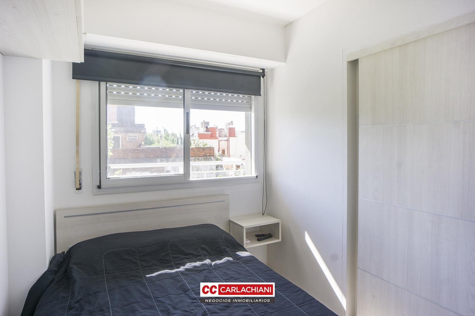 Departamento a la venta de un dormitorio al frente seminuevo con amplio balcón terraza corrido, cocina integrada con bajo mesa y alacena. y artefactos.Dormitorio con frente e interiores de placares.