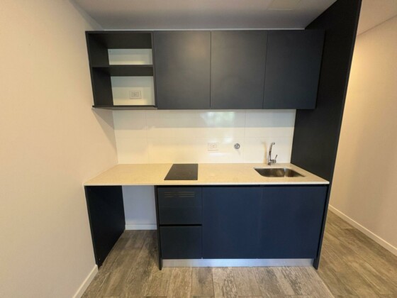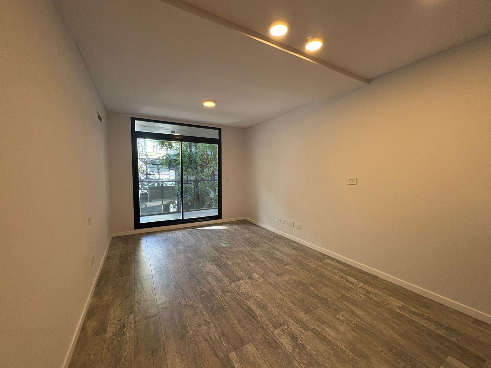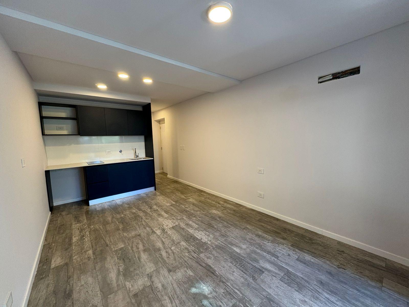 Departamento Monoambiente a estrenar al frente con amplio balcón, compuesto de un ambiente único, sector de cocina muy equipada y moderna, mas baño completo con bañera. Termotanque y anafe eléctrico. Blackout de primera calidad instalados.