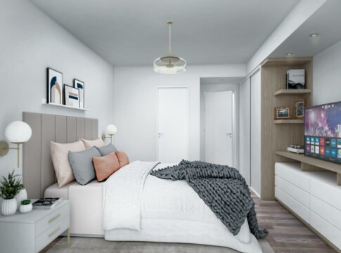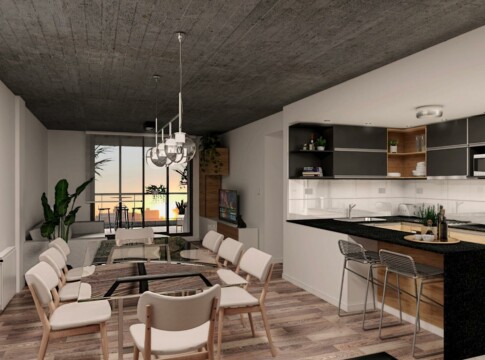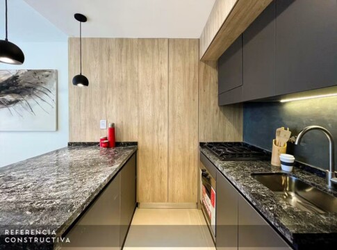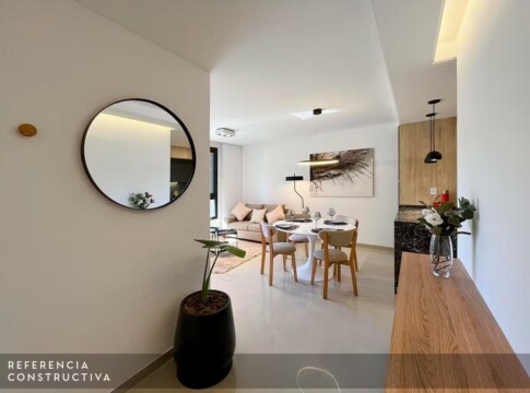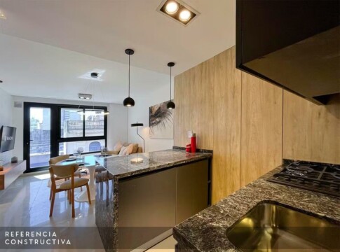 Semipiso de ventilación cruzada, 2 dormitorios, con excelente calidad constructiva y diseño. Amplios ambientes. La unidad cuenta con dos balcones (uno al frente y otro al contra frente), estar comedor, cocina con isla , lavadero independiente , dos baños y habitación en suite y vestidor. Amenities. Espacio para estacionar doble.