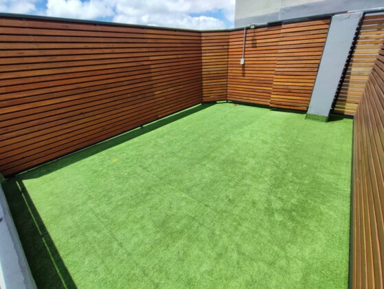 Ingreso de categoría con paredes revestidas en maderas y pisos de porcellanato o granito.