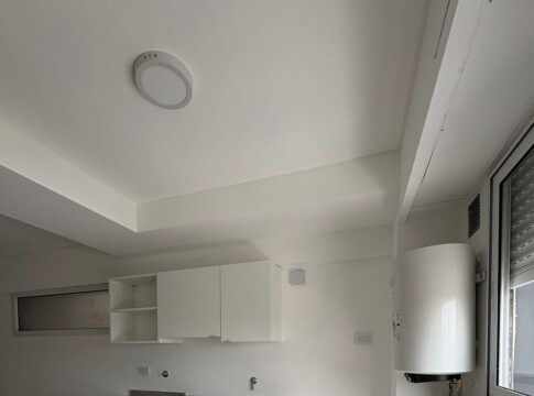Pisos porcelanato con zócalos, yeso en paredes, aberturas aluminio Módena con DVH, griferías mono comando primeras marcas, amoblamiento de cocina a medida, piso porcelanatos en dormitorio, placard a medida y con interior, mesada cocina granito con bacha acero inoxidable, baño con cerámicos completo, mampara en ducha, artefactos primera marca. pre instalación AA y cable TV. Edificio previsto para gas natural, se entrega con calefactor en living.