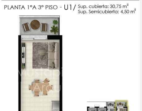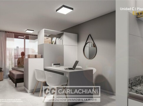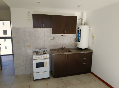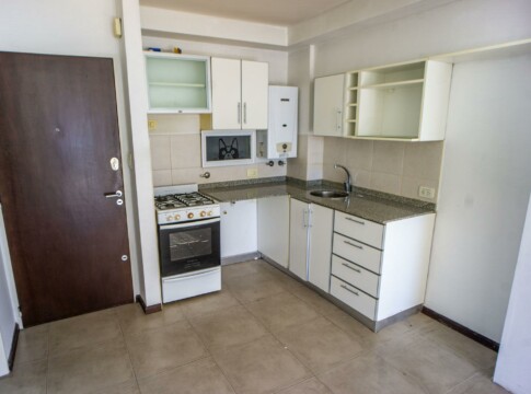 Departamento mnoambiente al contrafrente con cocina integrada completa bajo mesada y alacena y baño completo. Terraza de uso exclusivo.