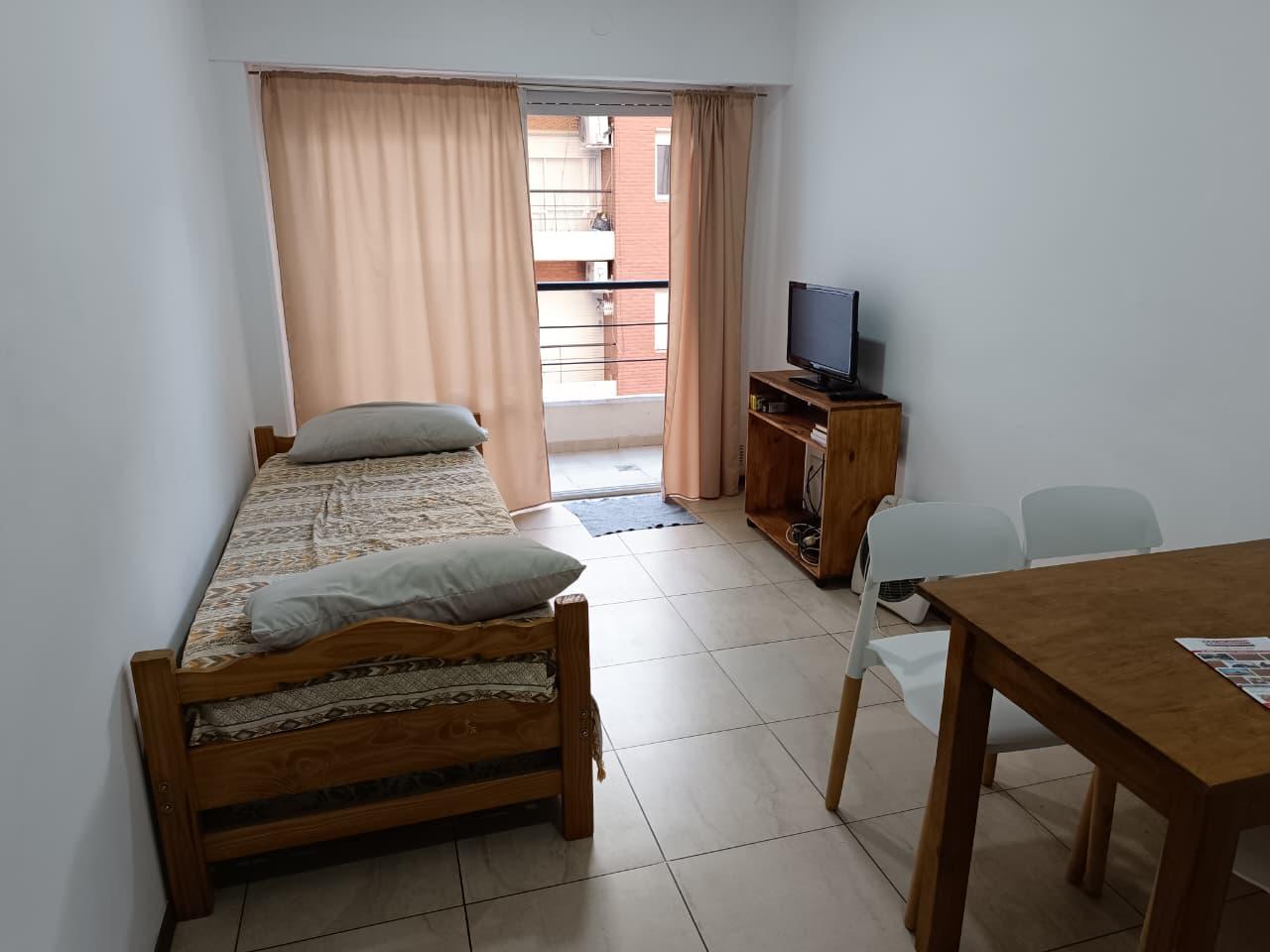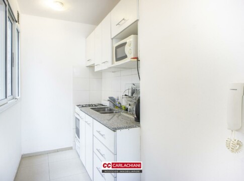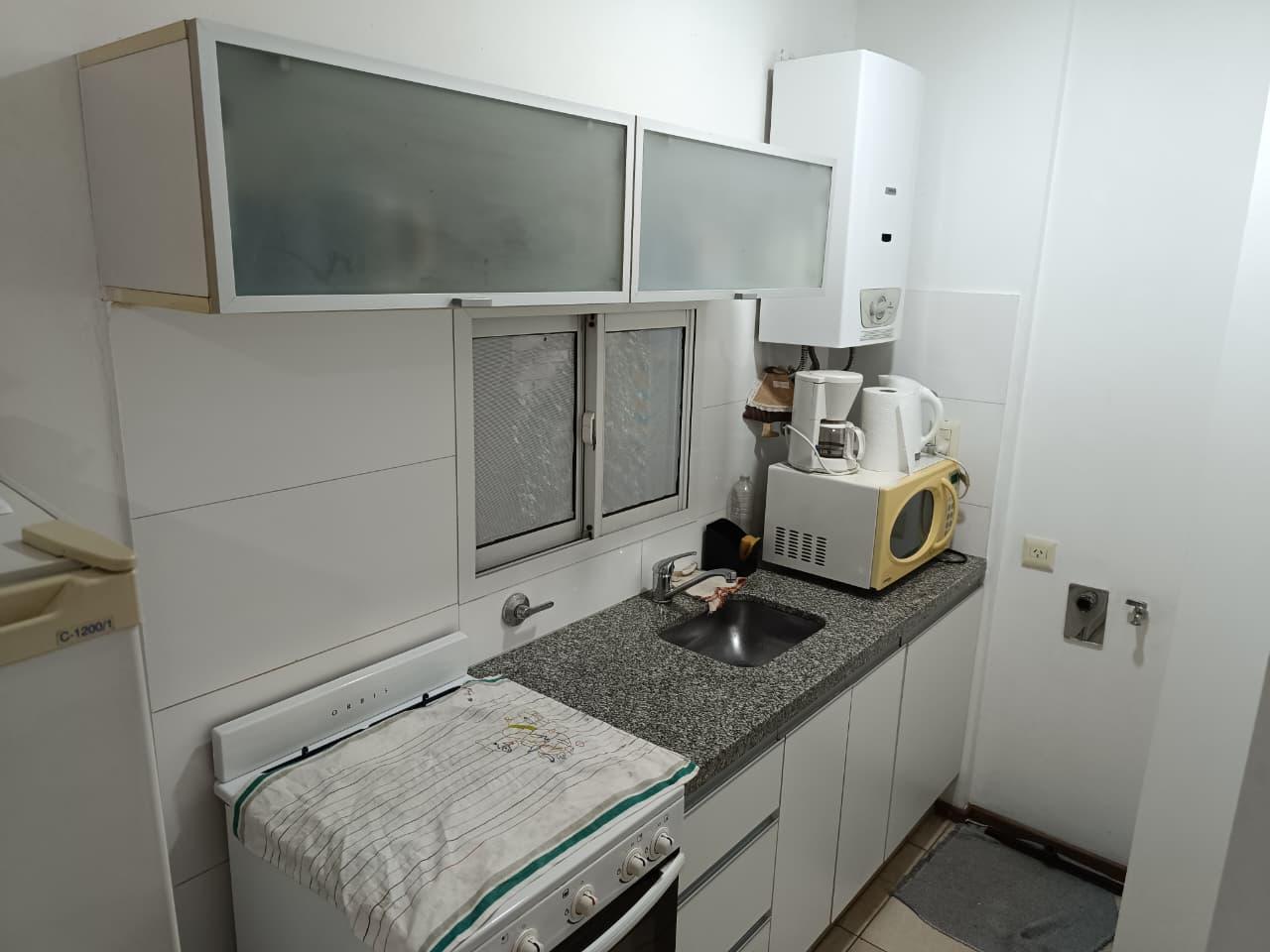 DESCRIPCIONDepartamento en primera torre, piso sexto contra frente, compuesto por 1 dormitorio con placard incorporado, cocina con mueble de bajo mesada y alacenas, aparato de cocina y calefón instalados, living comedor, baño completo con bañera, y balcón con vista al jardín central del edificio.