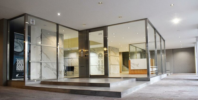 Ingreso principal jerarquizado. | Siete ascensores principales de primera marca, con motores de velocidad variable. | Puertas automáticas en cabina y pisos.