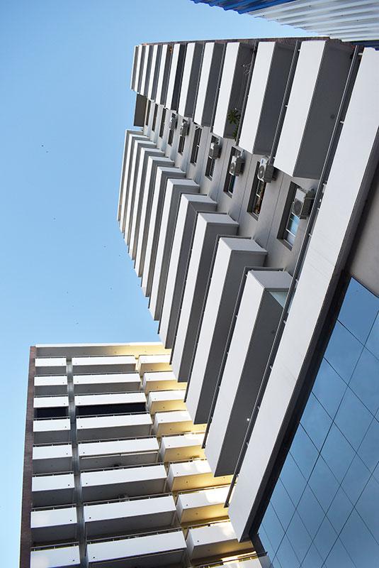 Ingreso principal jerarquizado. | Siete ascensores principales de primera marca, con motores de velocidad variable. | Puertas automáticas en cabina y pisos.